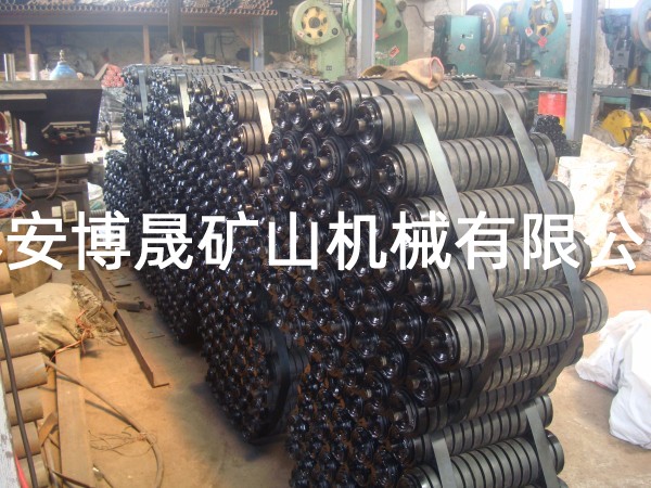 緩沖托輥(impact idler),緩沖托輥用于帶式輸送機受料處減緩落料對輸送帶的沖擊,主要針對洗煤廠、焦化廠、化工廠等腐蝕性環境而研制的一類托輥,它本身具有的韌性是普通金屬的10倍以上,壽命為傳統柱鞋的五倍,耐腐蝕阻燃,抗靜電,自重輕等特點,廣泛用于礦山開采。托輥輥體專用的高分子材料,其機械性能類似于青銅,具有很好的耐磨性,而且具有良好的自潤滑性能,不傷皮帶。 緩沖托輥防腐性能優越。輥體及密封件都用高分子材料制作,耐腐蝕。在腐蝕性場合使用,使用壽命可達到普通托輥的5倍以上。