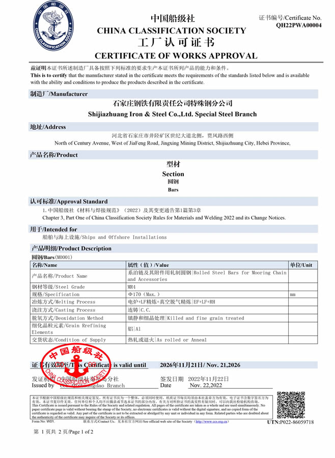 日本船級社證書NK                                              中國船級社工廠認可證書CCS